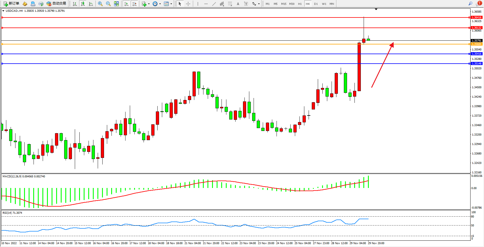 美元兑加元维持1.35791附近震荡,油价在明年仍存在上行风险,加元对俄乌冲突等风险事件的风险敞口有限,且流动性优越,这些都是预期加元在2023年表现优于其他顺周期货币的好理由,前提是风险情绪企稳。