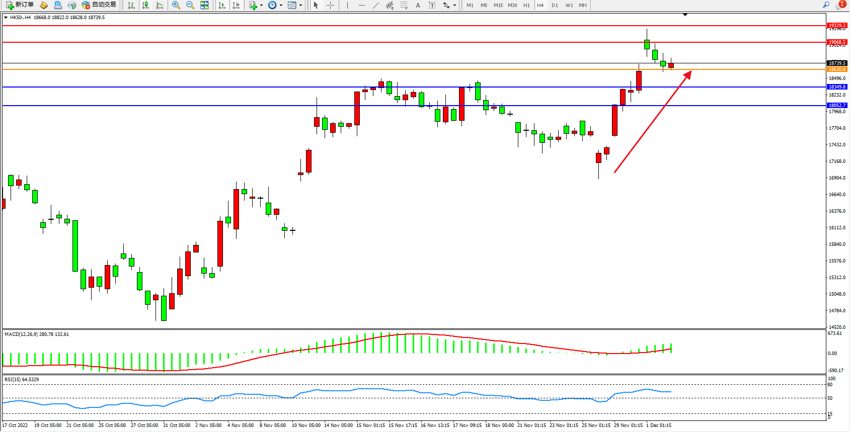 香港恒生指数12月2日(周五)收盘下跌61.09点,跌幅0.33%,报18675.35点;港股早盘冲高回落,午后震荡回升,恒生科技指数表现相对较强,收涨1.03%,恒指、国指分别跌0.33%和0.25%。大型科技股午后多数走强,快手涨4%,美团涨3%,阿里巴巴涨超2%,腾讯涨0.5%;南下资金全日净流入11.58亿港元,大市成交额为1427亿港元。