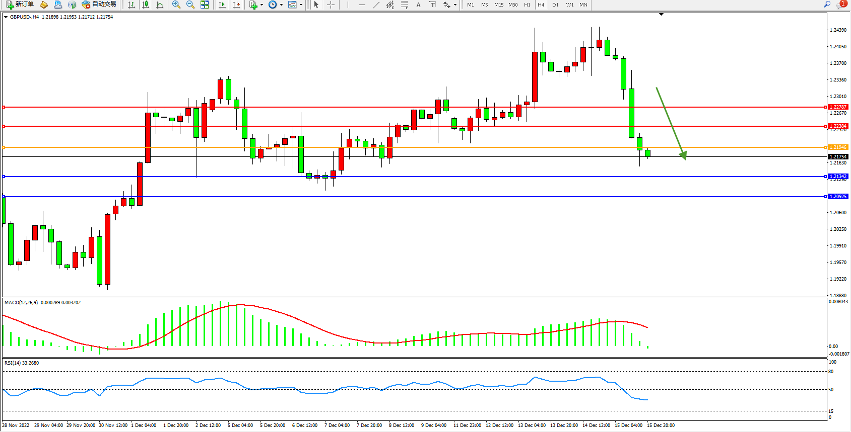 交易策略:1.21946下方看跌,目标1.21342、1.20925