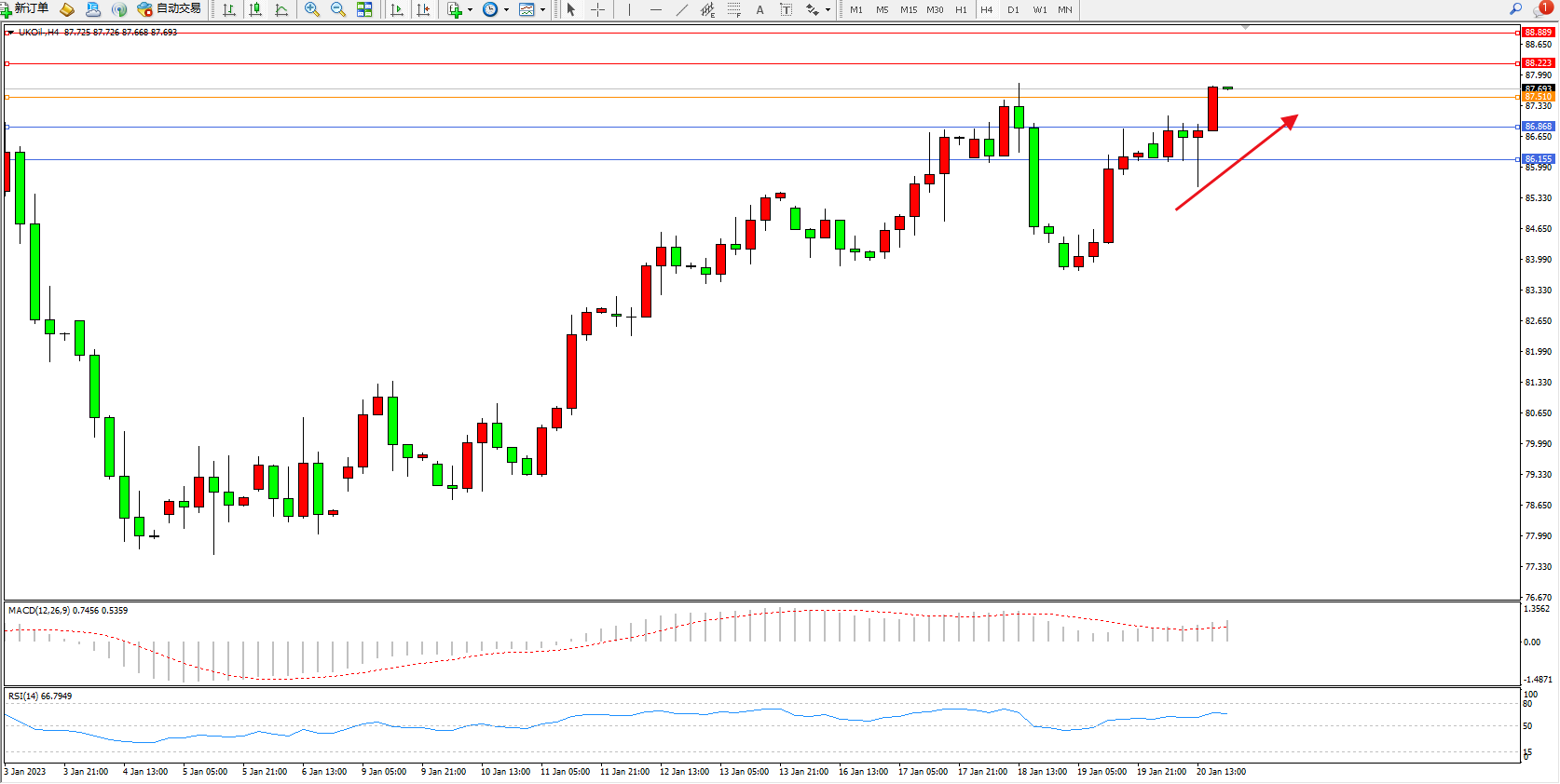 布油维持87.716附近震荡,围绕中国和美国的乐观情绪,石油交易商现在可能逢低买入,加上俄罗斯石油行业因受制裁而陷入挣扎,可能会在2023年收紧能源市场供需。