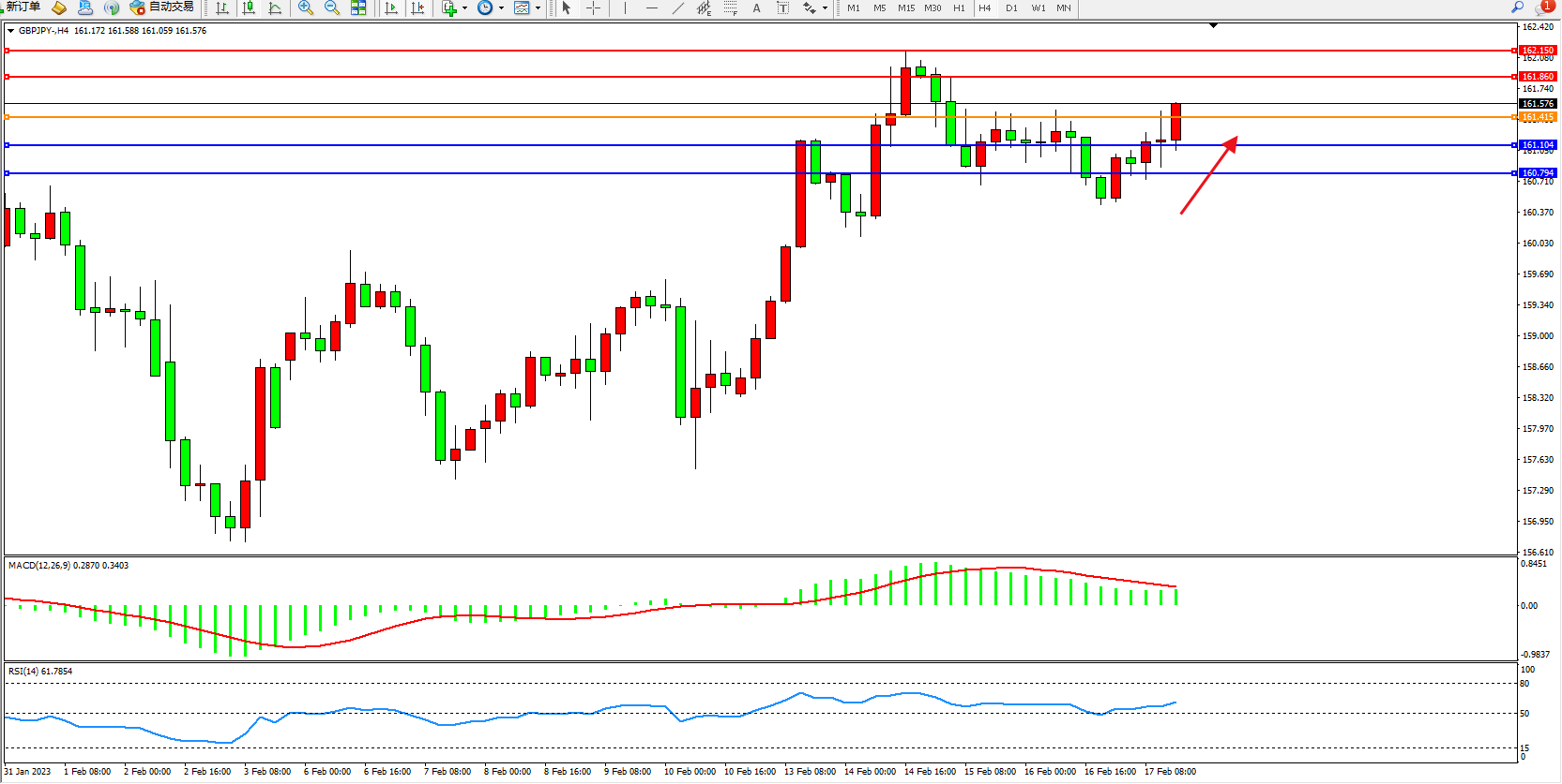 英镑兑日圆维持161.576附近震荡,2023年季调后英国零售销售月率为0.5%,而2022年12月的零售额下降了1.2%;销量比2020年2月新冠疫情爆发前的水平低1.4%。非实体零售(主要是在线零售商)的销售额增长了2.0%,一些反馈显示,1月份的促销活动支撑了其增长。