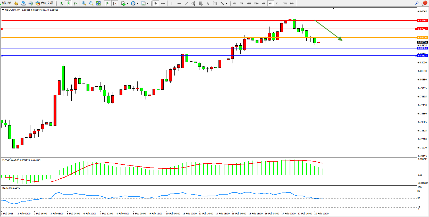 4小时图看:高位空头动力维持震荡下行,短期跌势未见止步,市场空头情绪用下,短期的跌势或将延续,MACD指标处于多头区域维持震荡下移,RSI指标处于50均衡线附近弱势徘徊中;