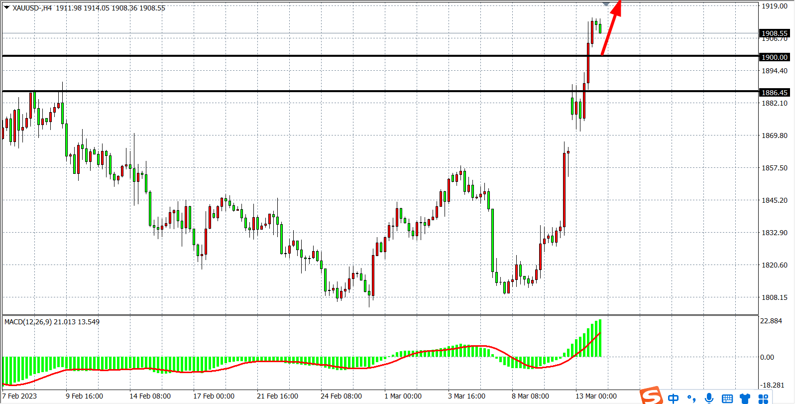 周一(3月14日)受到硅谷银行在内多家银行倒闭的影响,市场对美联储加息预期骤然降温,美元指数一度跌穿104,跌近1%,美债收益率大幅下降,避险情绪继续利好贵金属,,现货黄金盘中大涨近50美元,上破1900美元大关后继续上行,收涨2.09%。展望后市,令市场担忧的是,在美联储于2022年大幅升息下,硅谷银行仅是整个银行业危机和流动性危机的“冰山一角”,在巨大的金融风险暴露之下,避险情绪有望推升黄金继续上涨。