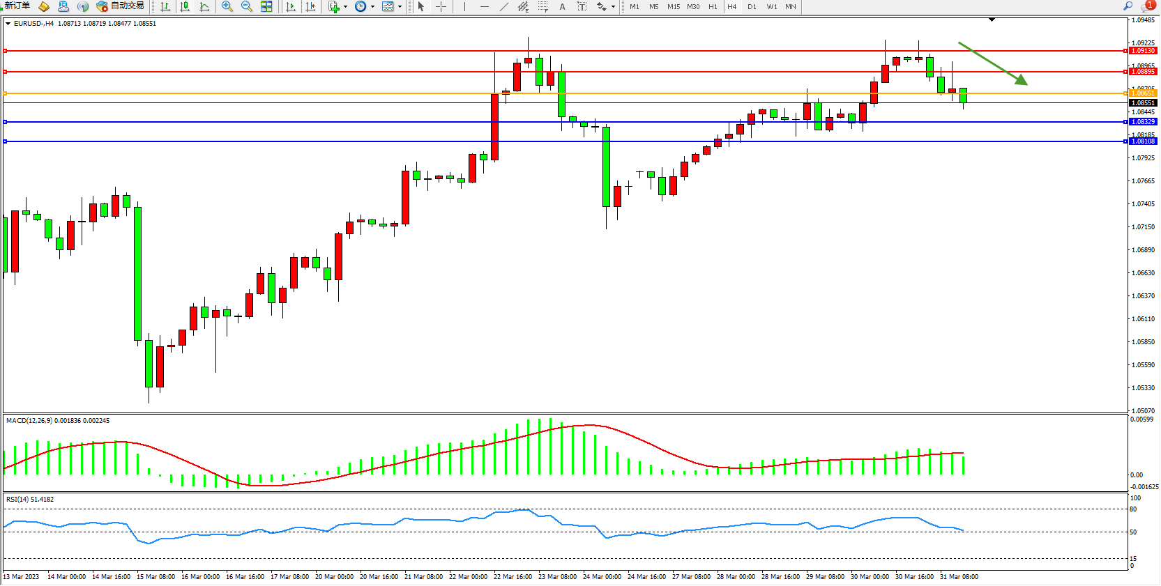 欧元兑美元维持1.08551附近震荡,欧洲央行管委Kazaks表示,借贷成本仍需上升,以应对消费价格的高增长。近期,金融业动荡始于美国,随后蔓延到瑞士,这使得欧洲央行将通胀恢复到2%的任务变得更加复杂。
