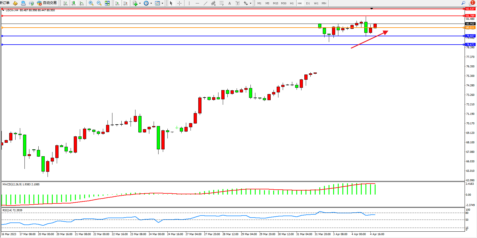 交易策略:80.511上方看涨,目标81.789 82.537