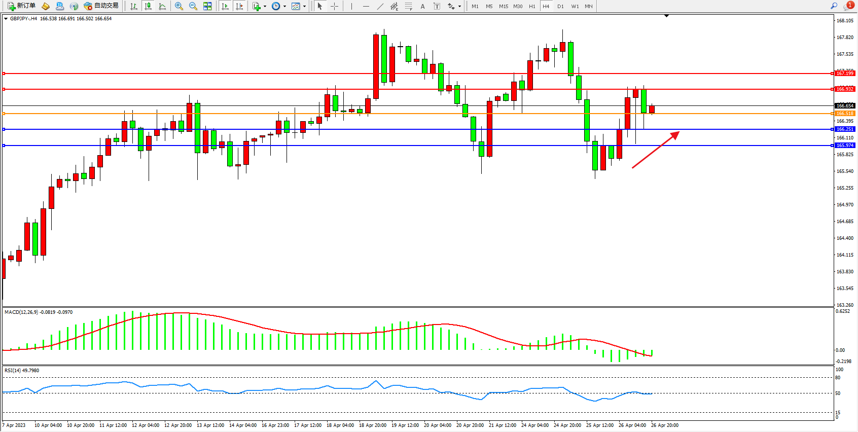 英镑兑日圆维持166.654附近震荡,货币市场利率显示,交易员们认为英国央行在5月份加息25个基点至4.5%的可能性为99%。再往后,他们现在预计到今年11月会达到4.9%的峰值。而就在一个月前的预期还是在8月份达到峰值4.5%。