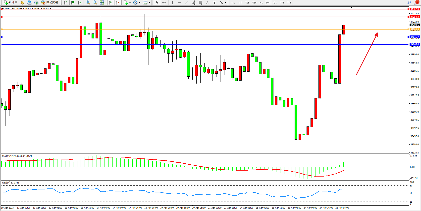道琼斯指数4月28日(周五)收盘上涨272.79点,涨幅0.81%,报34098.95点;美国联邦存款保险公司(FDIC)准备即刻接管第一共和银行。银行业监管机构已认定该地区银行状况恶化,没有更多时间通过私营部门实施救助。