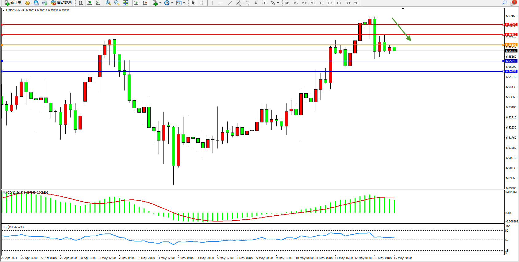 交易策略:6.96105下方看跌,目标6.95343  6.94855