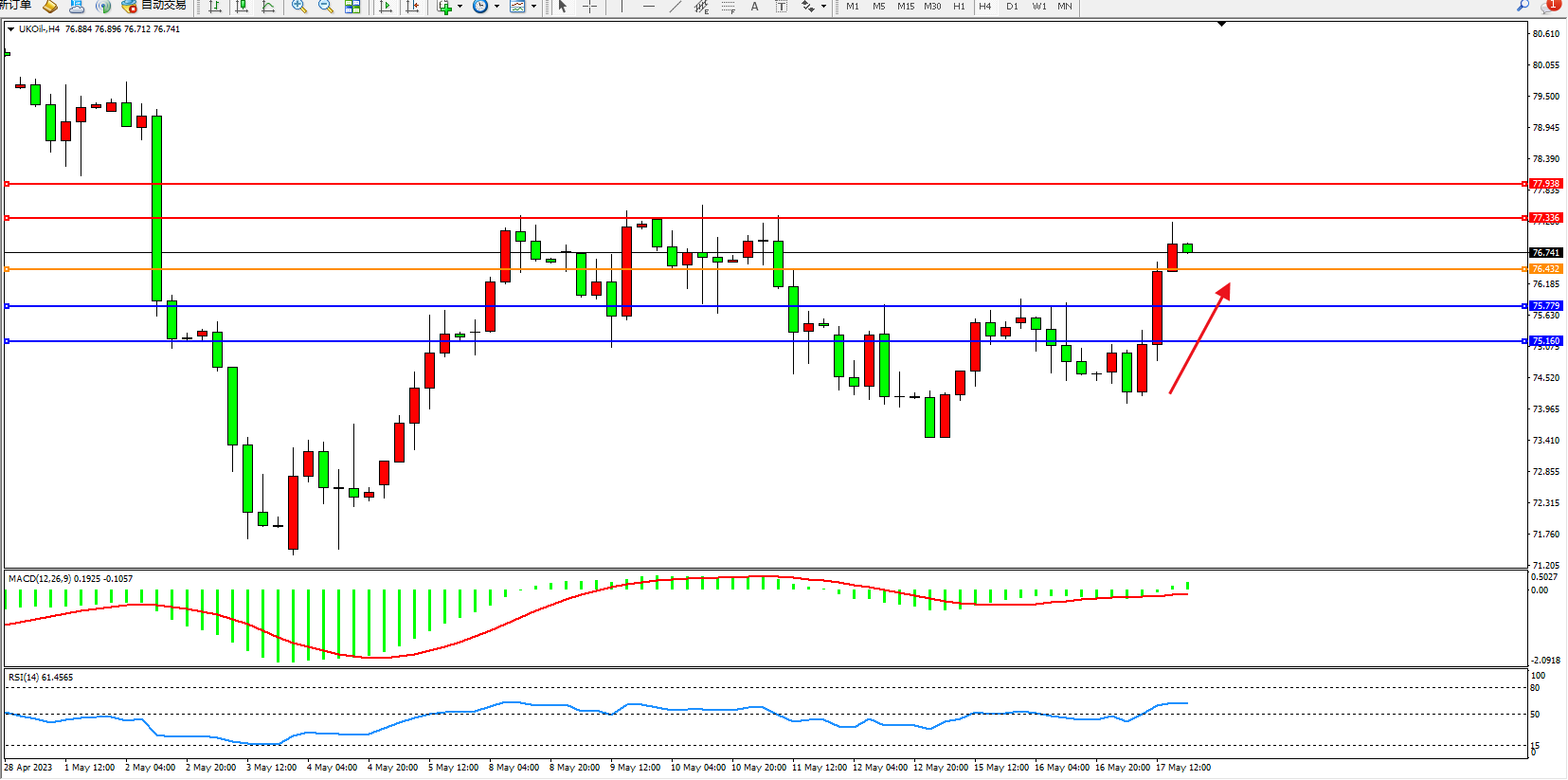 交易策略:76.432上方看涨,目标77.336 77.938