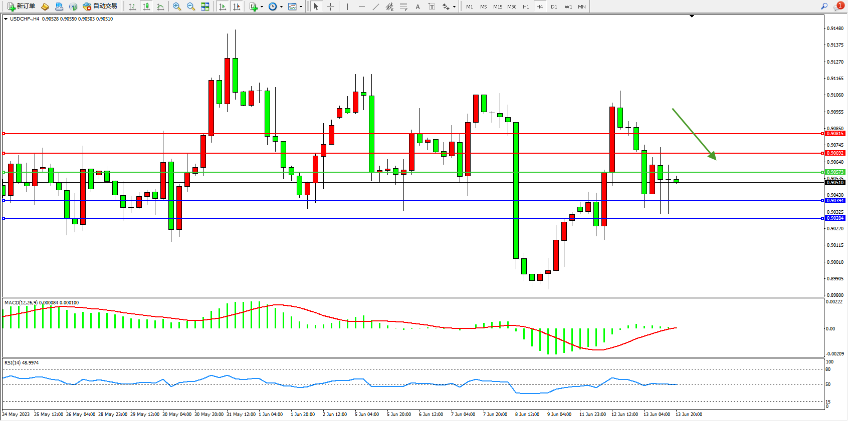 美元瑞郎USDCHF——4小时K线图显示: