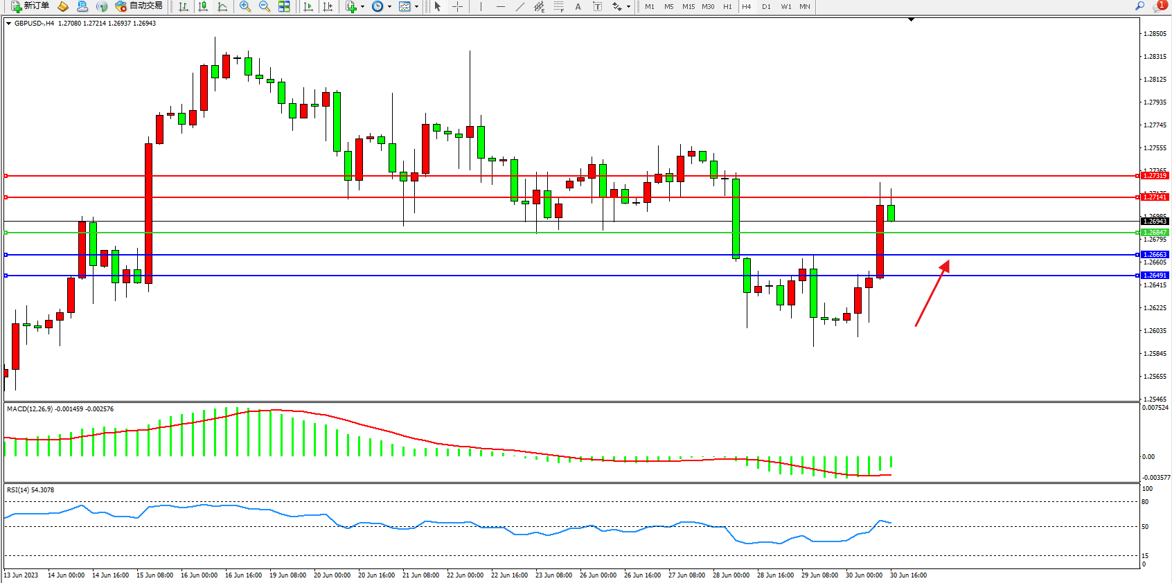 备选策略:1.26847下方看跌,目标1.26663  1.26491