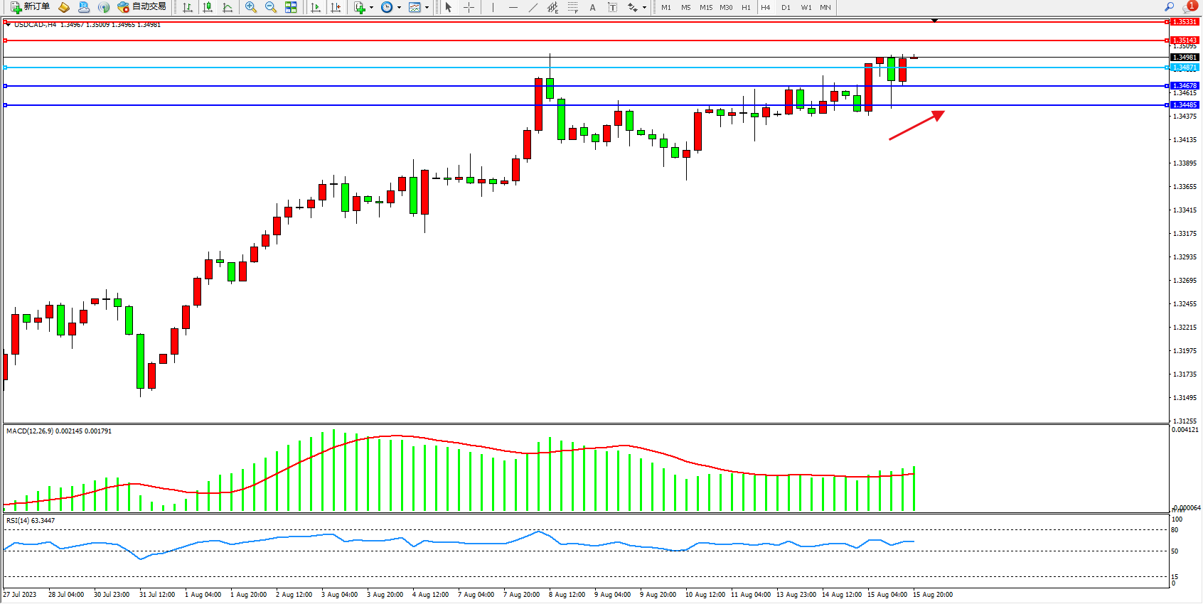4小时图看:多头动力高位维持整理缓慢上行,市场多头不断上移,短期有继续向上移动迹象,MACD指标处于多头区域高位整理,RSI指标处于多头区域徘徊;