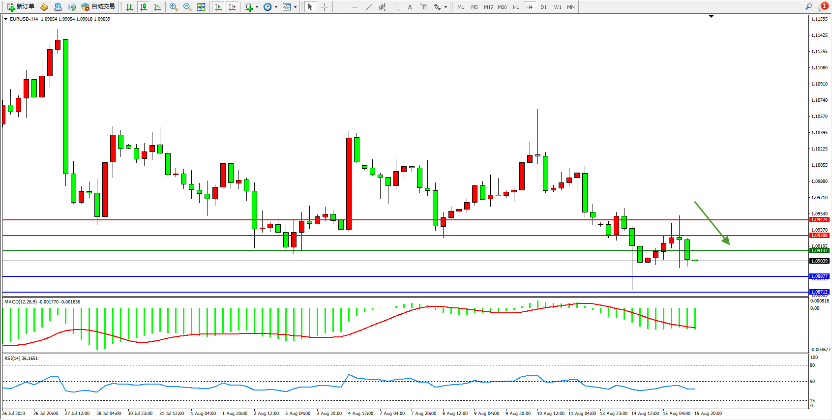 欧元兑美元维持1.09039附近震荡,整体ZEW预期指数趋于稳定,8月份的最新数据有所上升,原因是尽管欧洲央行进一步收紧政策,但金融市场显示出了韧性。