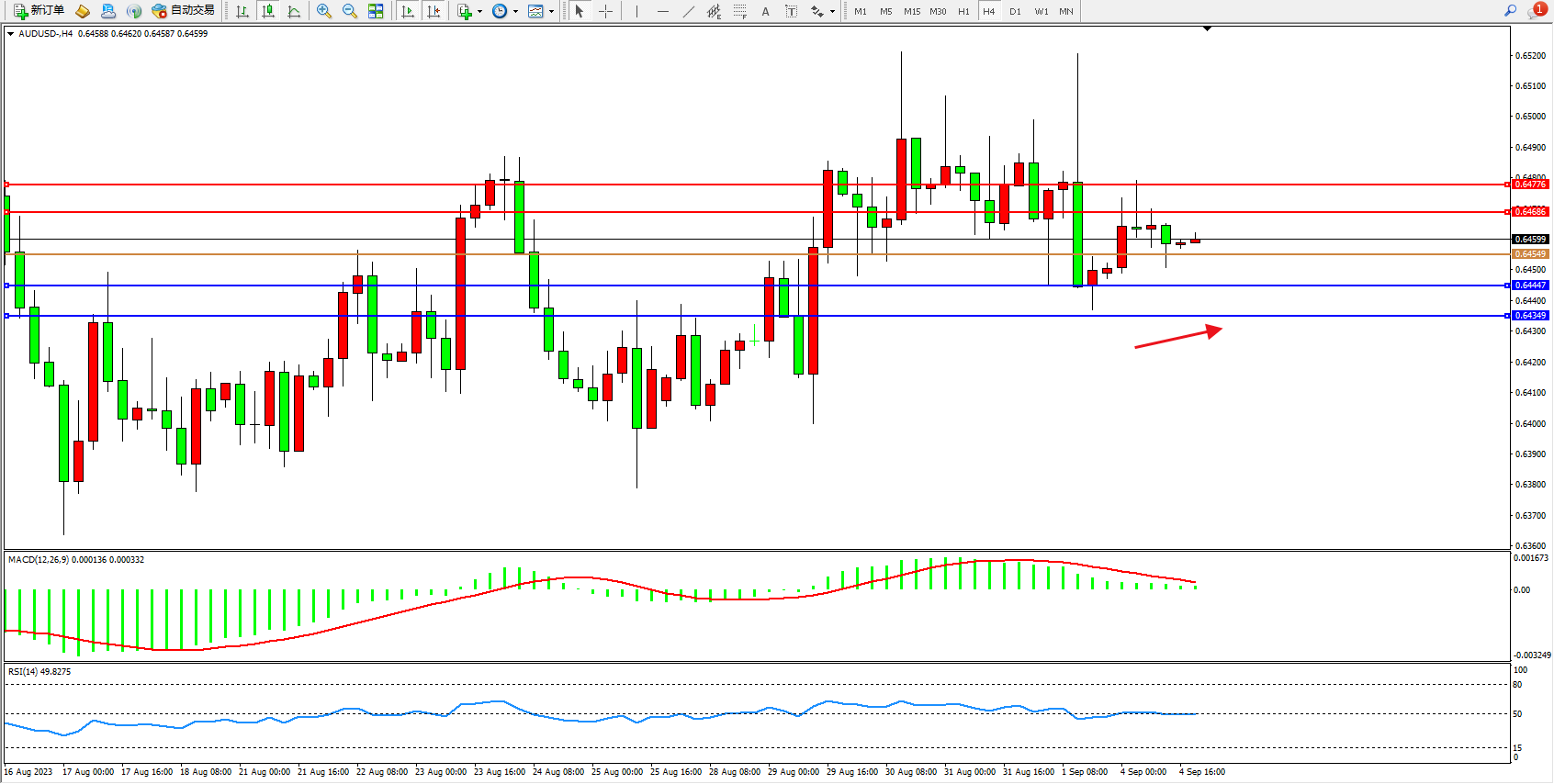 备选策略:0.64549下方看跌,目标0.64447 0.64349
