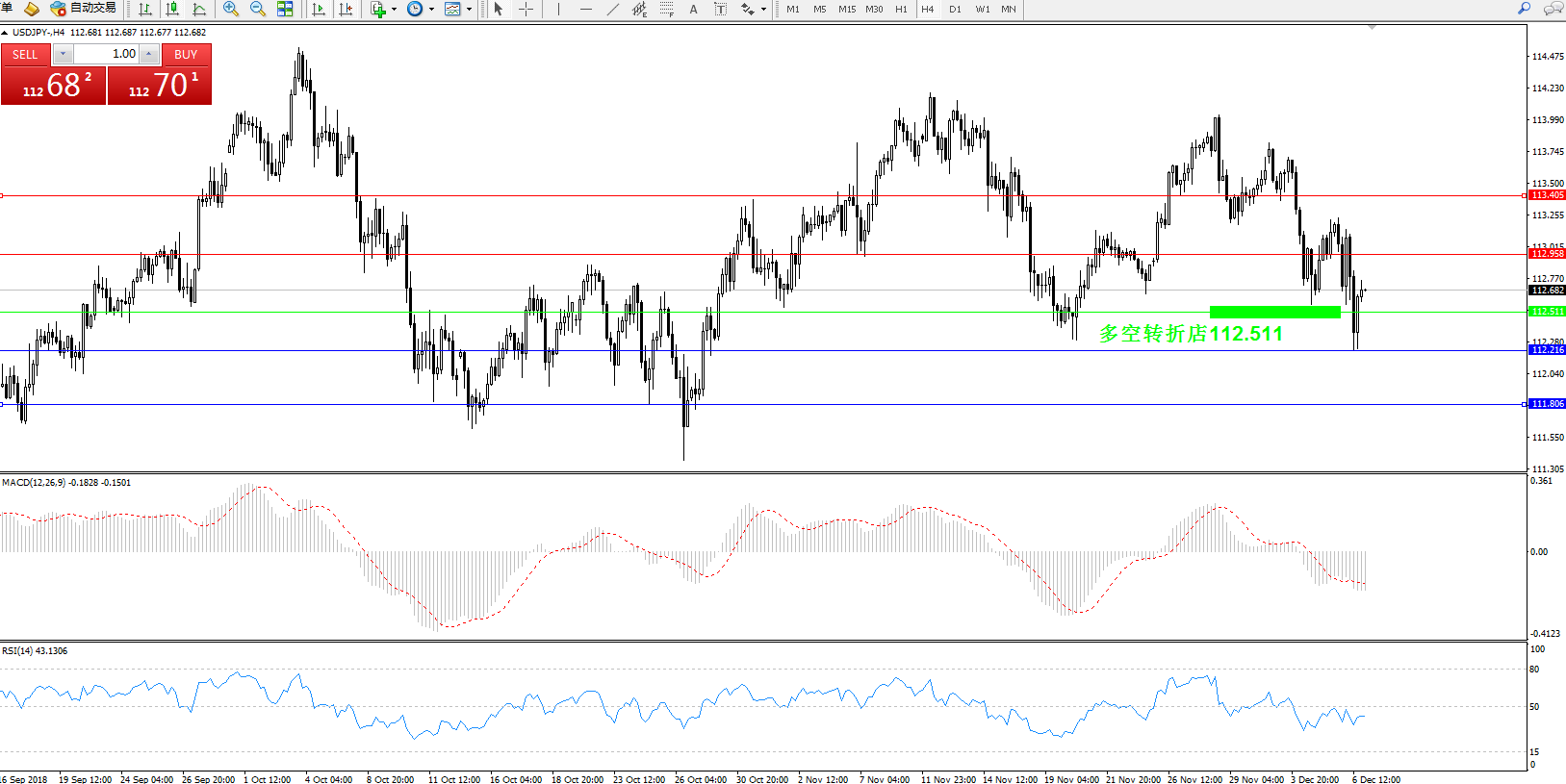 交易策略:112.511上方看涨,目标112.958、113.405