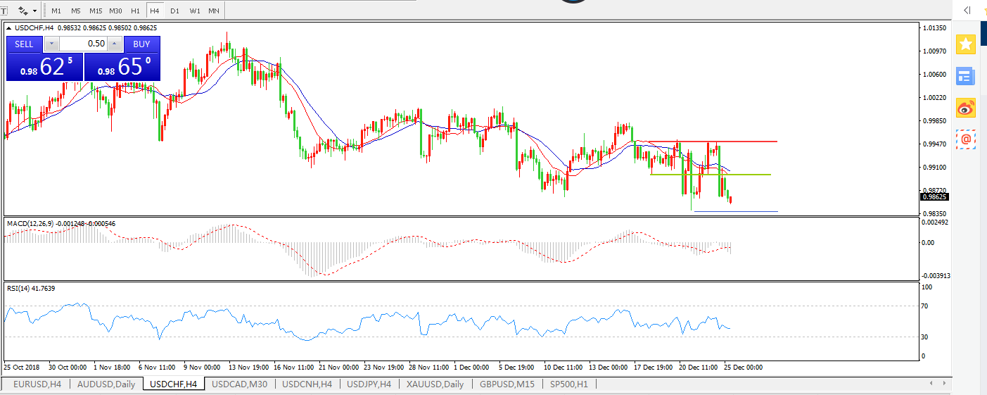技术面简析: 均线死叉延续,MACD在0轴下方放量,RSI再度下行,短期汇价有进一步走低试探低点的态势。