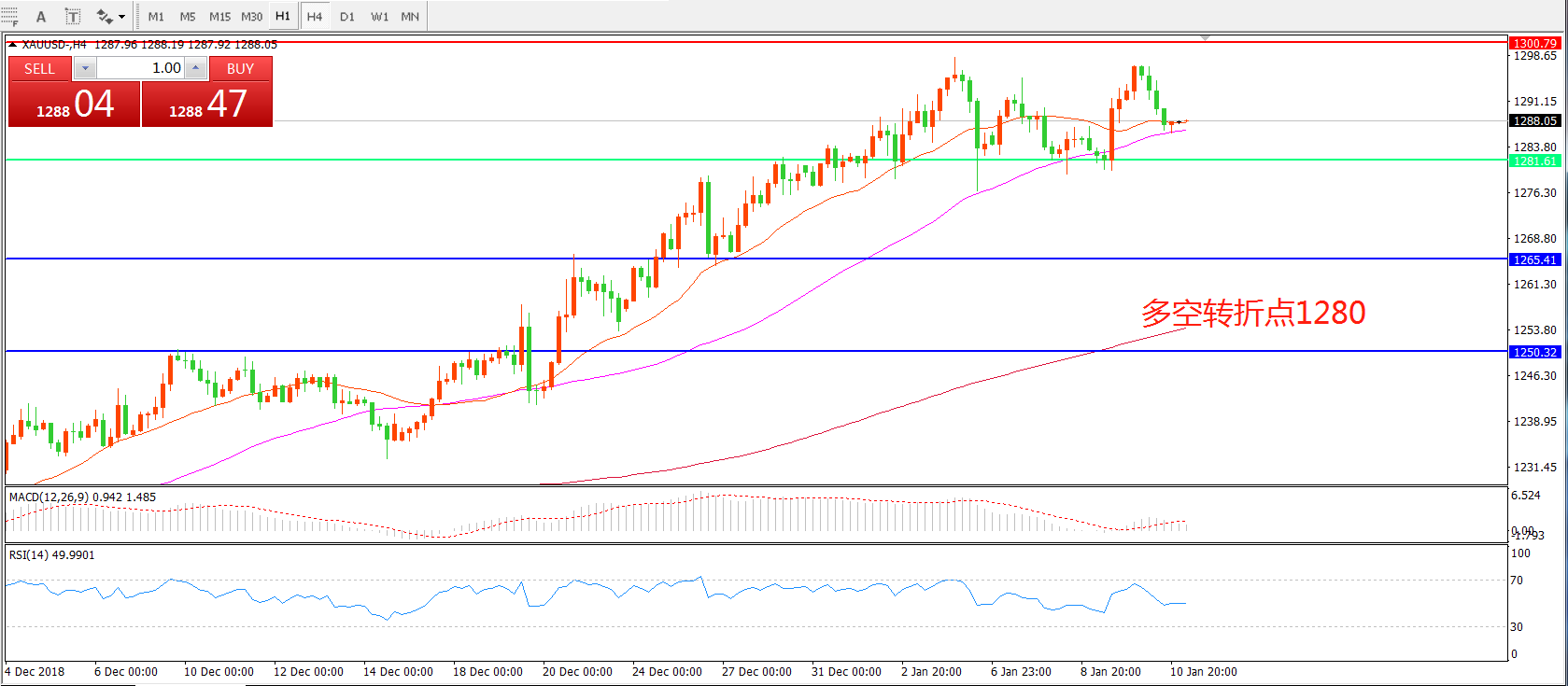 美联储主席鲍威尔周四(1月10日)在华盛顿经济俱乐部发表讲话。鲍威尔表示,2018年是美国经济很好的一年,劳动力市场在诸多指标来看都非常强劲。如果美联储的预估正确,预计失业率将进一步稍稍走低。潜在经济数据并未指向经济将出现放缓。并未看到存在需要美联储采取行动的金融不稳定状况。受此影响黄金小幅下行,最终收报1287.40美元/盎司。