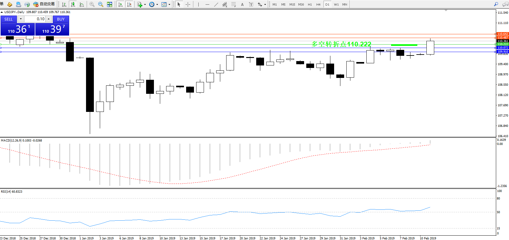 交易策略:110.222上方看涨,目标110.487、110.642