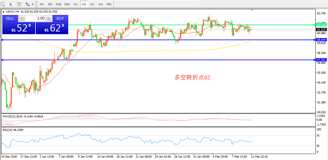 交易策略:在62.00之下看跌,目标60.00 58.00