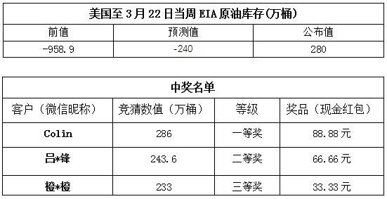 2019年3月第4期“EIA大竞猜”活动中奖公告