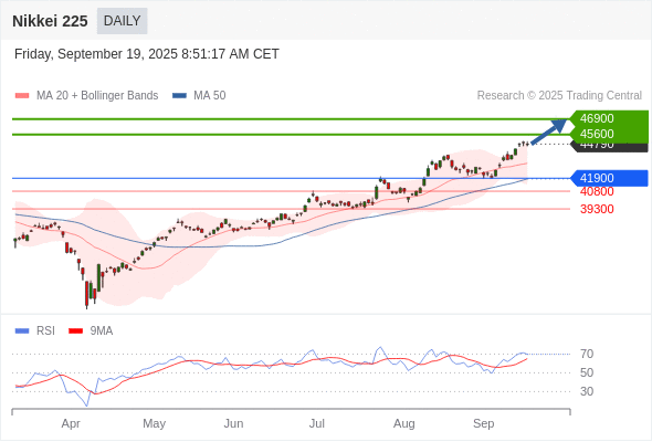 Nikkei 225 短线: 上升趋势。