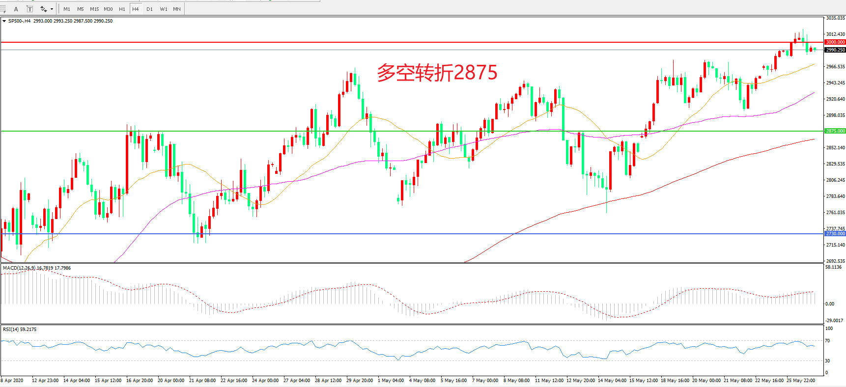 标普500 SP500 4小时图