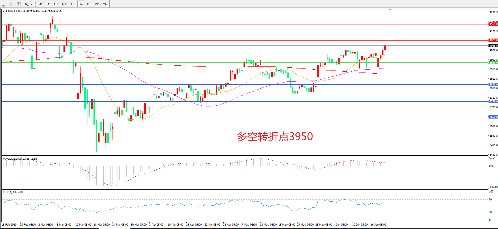 上周五(6月19日)两市相对平开后,多方吹响进攻号角,三大指数集体飙升,沪深300突破前期整理区间,收报4046.60点。北上资金一度流入300亿,截止收盘,数据稍有回落,全体净流入超180亿元。