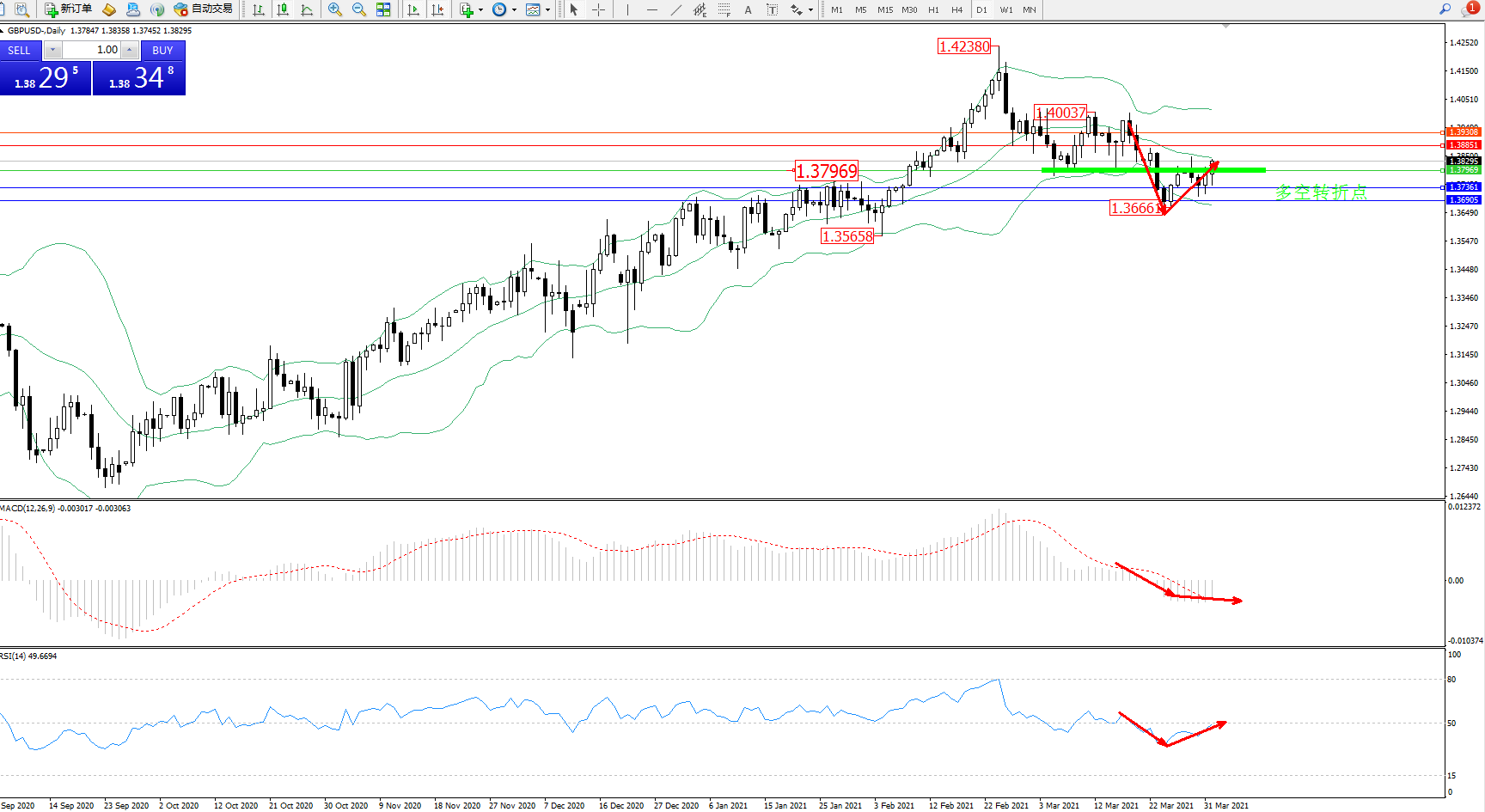 交易策略:1.37969上方看涨,目标1.38851、1.39308