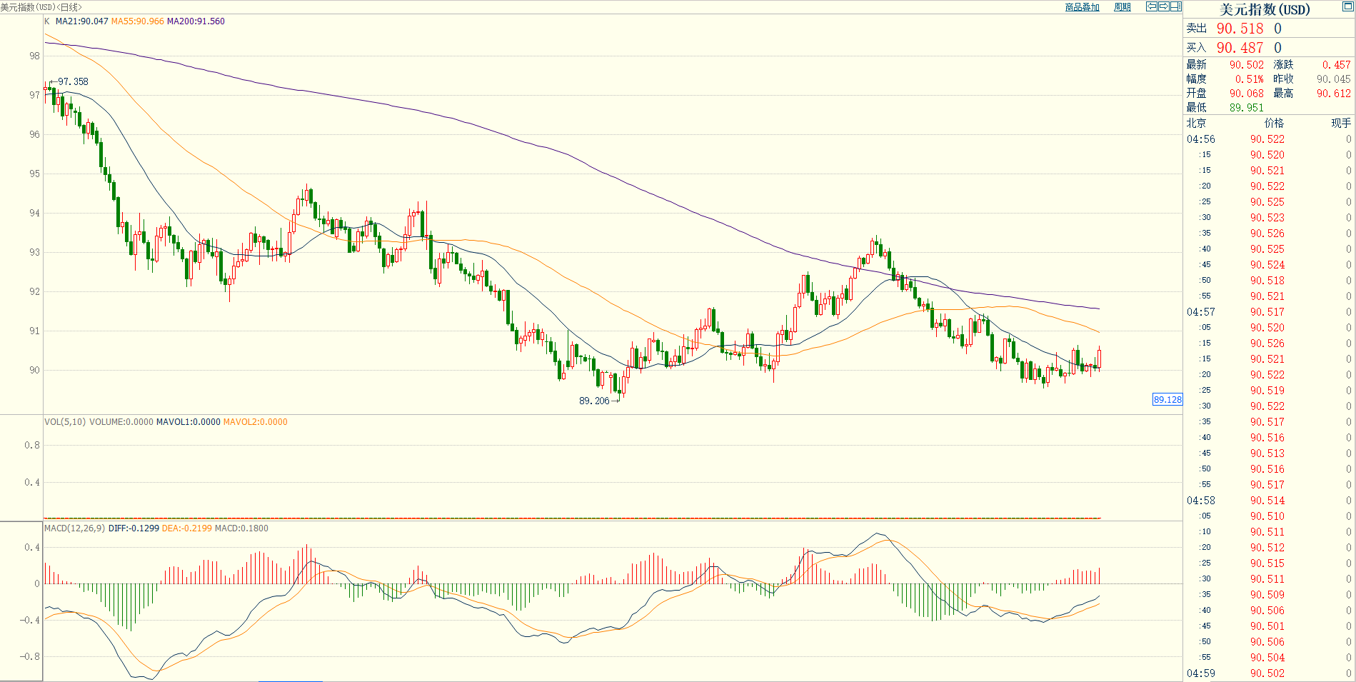 目前来看,美国的疫情逐渐好转,经济逐渐复苏,货币进一步大幅宽松的概率较小,美元指数在90附近会有较强的支撑。但距离货币政策转向还需要一段时间,美元指数持续上升的概率也较小,大概率会在90附近振荡。