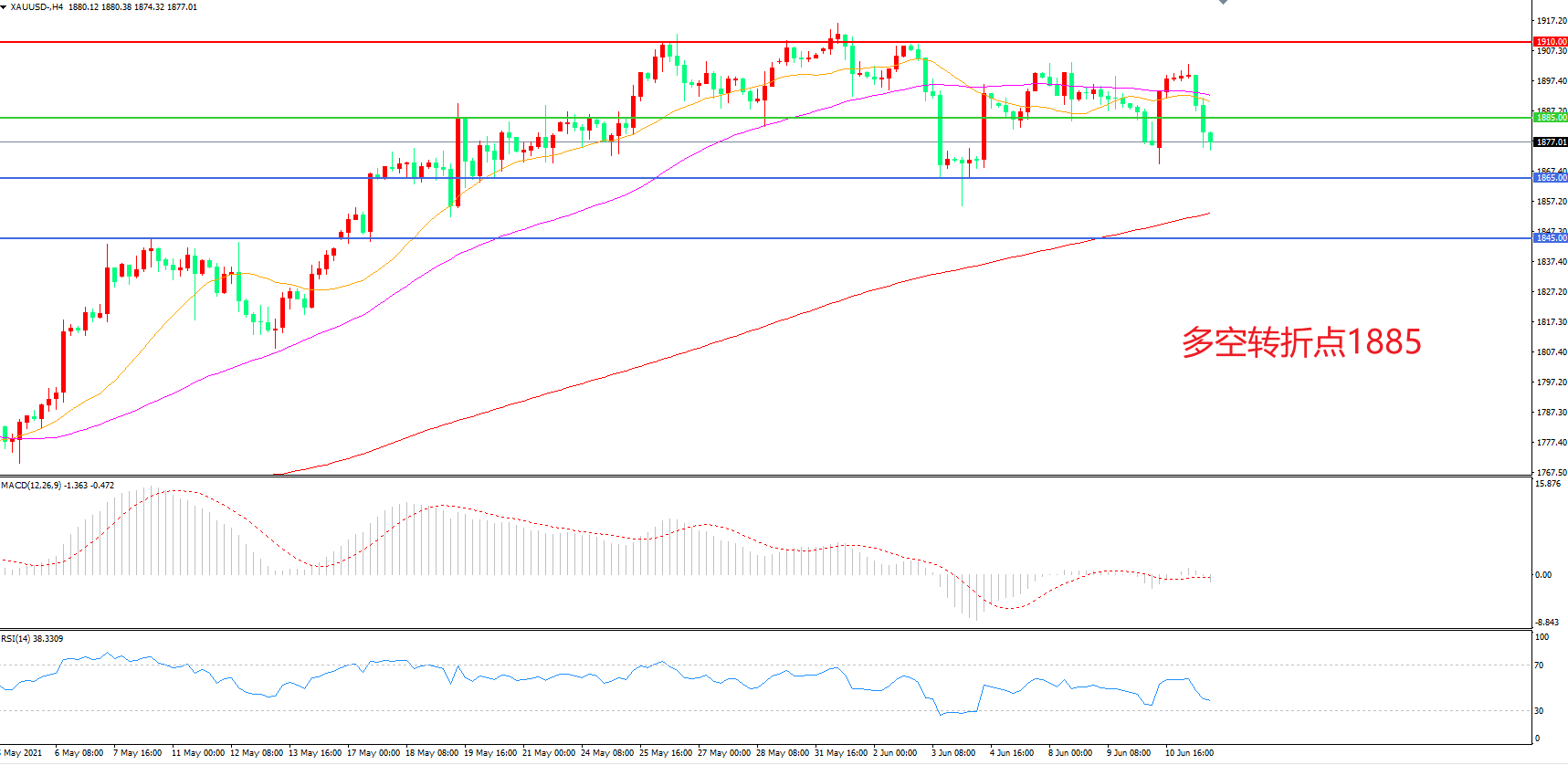备选策略:在1885.00之下看跌,目标1865.00 1845.00