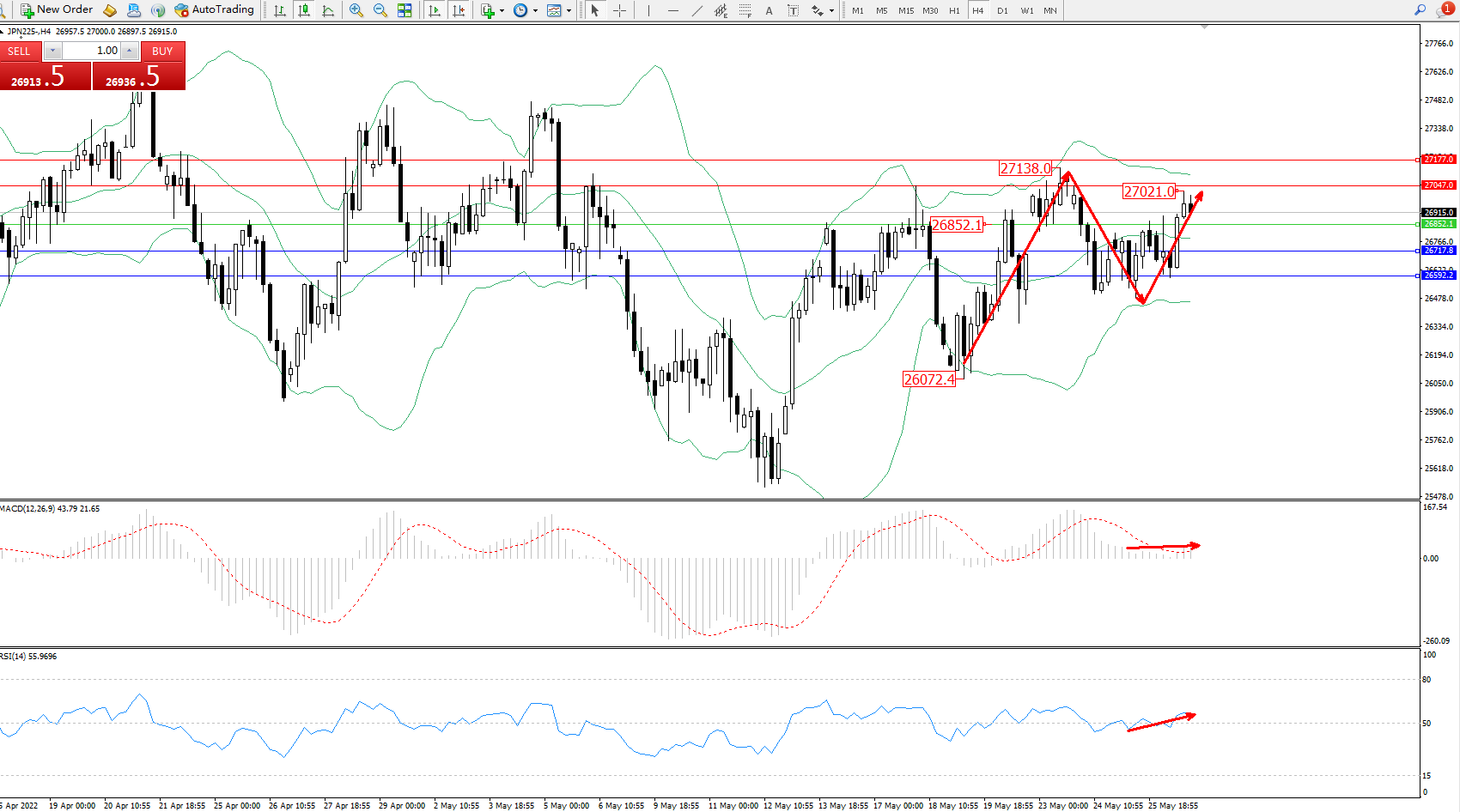 日经225指数5月26日(周四)收盘下跌68.30点,跌幅0.26%,报26609.50点。日本疫情趋缓,包括东京、大阪等地今天新增确诊病例持续较上周同日减少;日本政府将于26日正式宣布自6月起重新接受外国游客入境,并将每天入境人数上限从1万人提高到2万人。