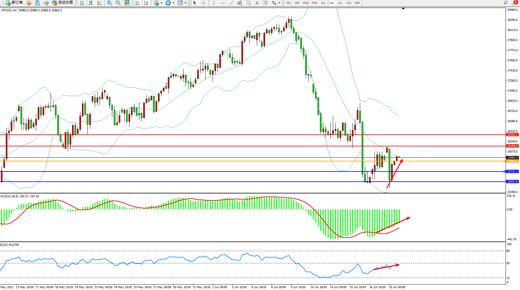 日经225指数6月20日(周一)收盘下跌248.00点,跌幅0.96%,报25715.00点。随着全球债券市场遭到抛售,日本基准收益率突破日本央行0.25%的容忍上限,日本央行加大了购债力度。