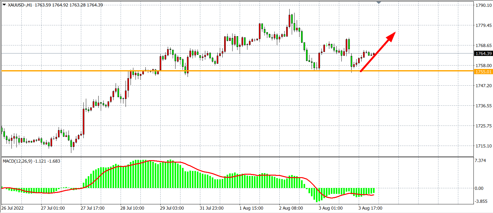 交易策略:在1755.00之上看涨,目标1770.00           1785.00