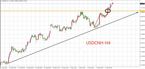 此次人民币破7,主要动力还是来自于美元的升值。早在9月13日晚间,美国公布了8月份CPI数据,这是9月21日美国议息会议之前,最重要的一个经济数据。结果美国CPI数据为8.3%,高于市场预测的8.1%,凸显美国控制通胀道路的漫长与艰难,也再次点燃了对于美国大幅加息的预期,目前9月份再次加息75基点几乎没有悬念。受此消息影响,美元指数大涨1.5%,创下今年以来最大单日涨幅。随后市场对美联储加息的押注愈加激烈,人民币再遭受较大贬值压力。