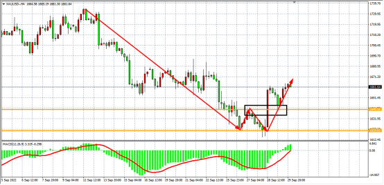 “技术性衰退”之下,美联储官员依旧坚定强硬的鹰派立场,英国央行救市继续为市场风险偏好带来回暖效应,美元延续高位大跌以及美债收益率骤降的共同作用给了金价反弹的机会,现货黄金先跌后涨,美盘一度涨至1664.78美元高点,最终收涨0.04%。展望后市,利率前景和避险有望继续支撑美指走高,若美元延续强势,那么金价反弹可能难以持续。