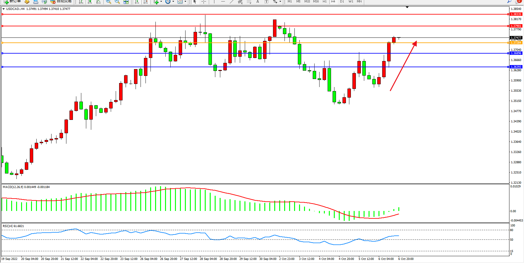 交易策略:1.37284上方看涨,目标1.37901、1.38335