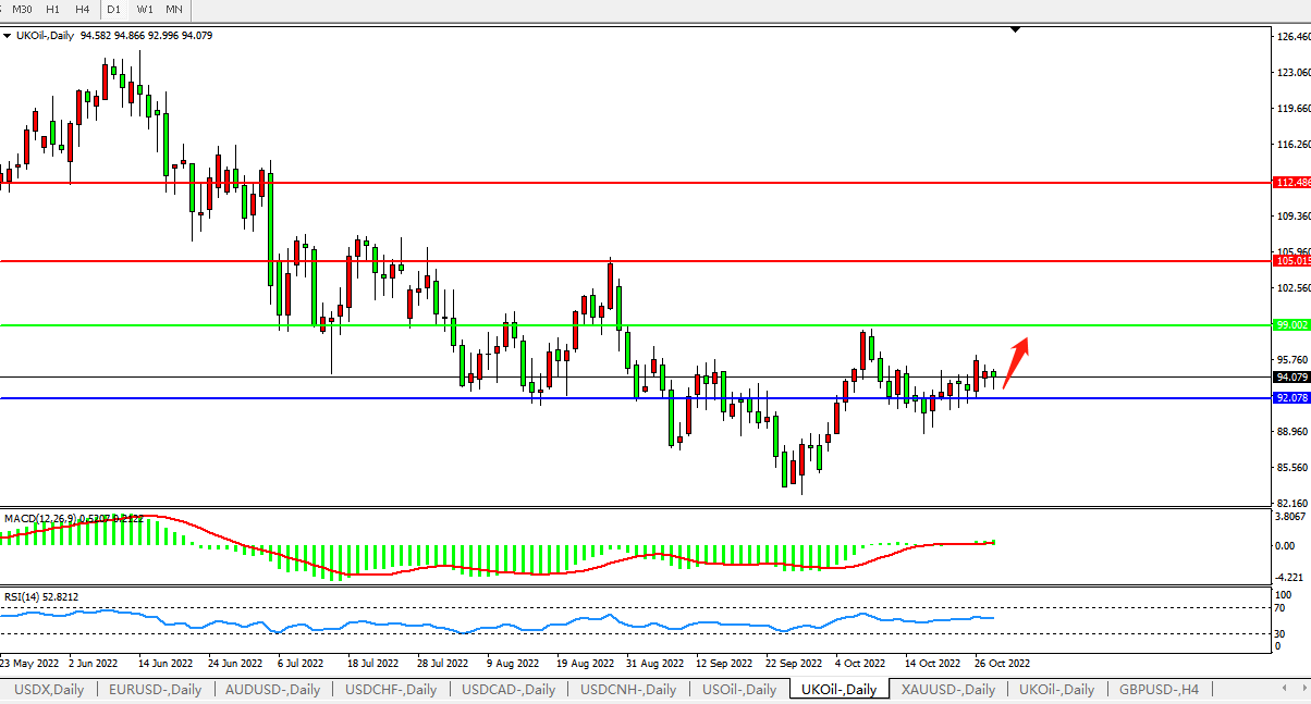 日线图看:短线价格整理蓄势,短期图形结构中性偏强, MACD量能柱0轴上若隐若现,RSI开始小幅走升,短期油价有进一步反弹上攻需求,中期依旧滚动做空。