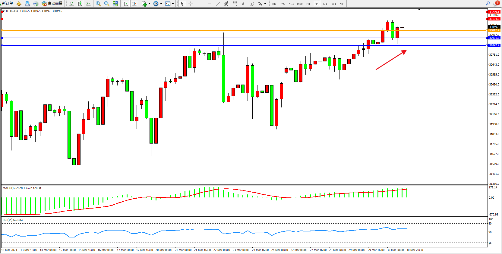 道琼斯指数3月30日(周四)收盘上涨141.96点,涨幅0.43%,报32859.56点;美联储的目标始终是让劳动力市场摆脱严重供需失衡的困扰。美国商务部公布的第四季度GDP终值录得2.6%,略低于此前预计的2.7%。商务部称这一变化主要是由于消费者支出和出口的向下修正。
