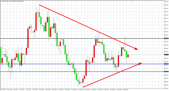 周五(9月22日)美国总统拜登政府很可能在9月底停摆,国债和股市监管活动将严重受限。美国数据好坏参半,美元在初请失业金人数数据公布后见顶回落,黄金小幅反抽,周内收涨0.08%。